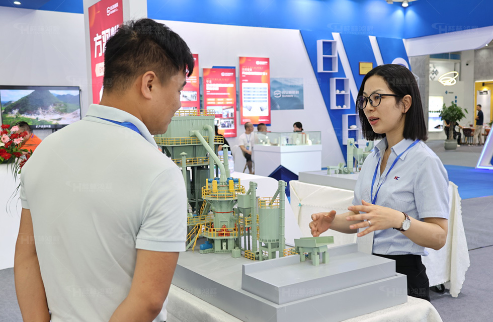桂林鴻程作為專業的粉體加工整套解決方案提供商,堅持“以客戶為中心”的經營理念,堅持綠色低碳發展,不斷在碳酸鈣磨粉領域創新制造,為客戶創造更大價值。在本次展會上,鴻程展示了HLM立式磨、HLMX超細立式磨、HCH超細環輥磨、HC系列擺式磨等磨粉科技及裝備。賀州是全國超大的重鈣粉體和人造崗石生產基地,鴻程立足于賀州碳酸鈣行業發展,精準發力,提高產品質量,并為客戶提供一站式總包服務,使得鴻程磨粉機系列產品也迅速在賀州市場廣泛應用。